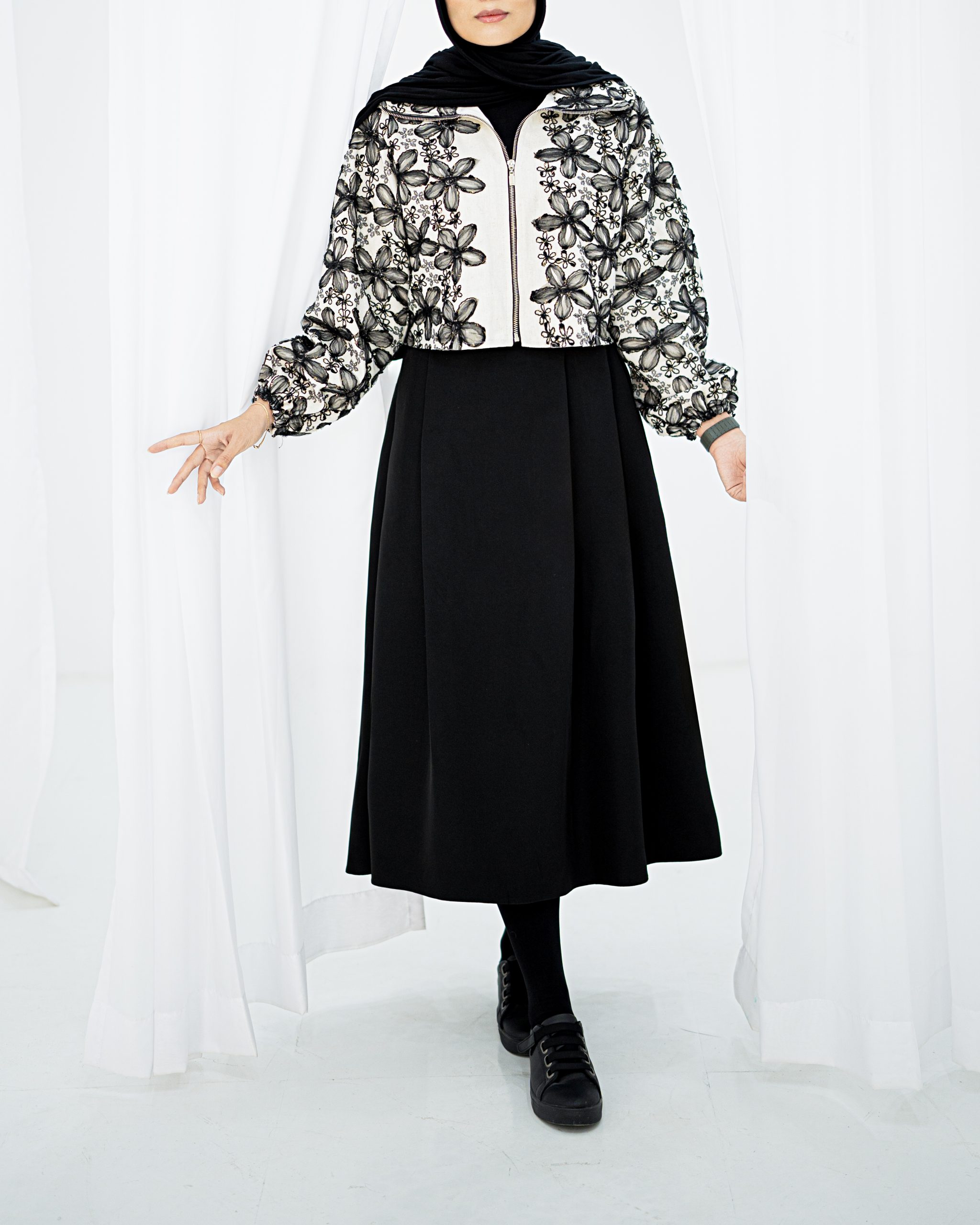 پشت کمر دامن کش کار شده و کنارش زیپ مخفی داره